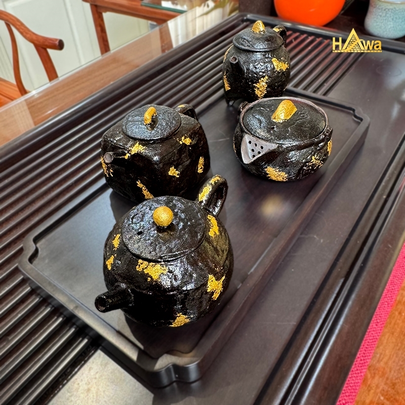 Ấm Tử Nê Sơn Mài Mạ Vàng 110ml – Thủ Công Nghệ Nhân