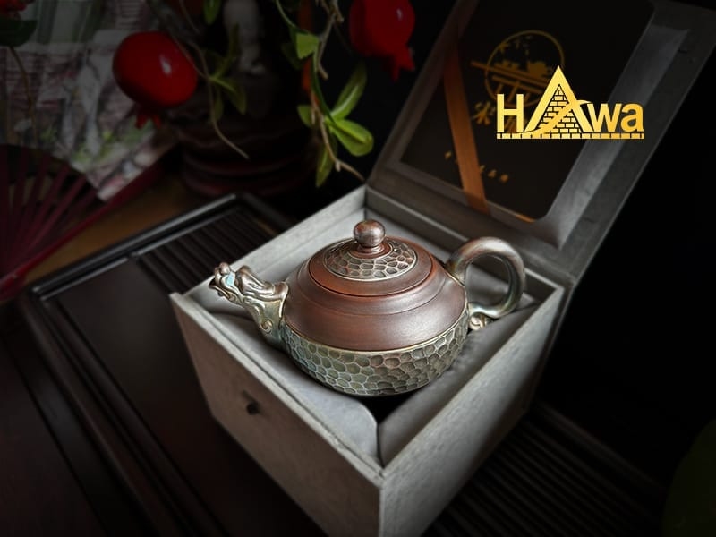 Ấm Tử Sa Thủy Bình Giao Long Mạ Bạc