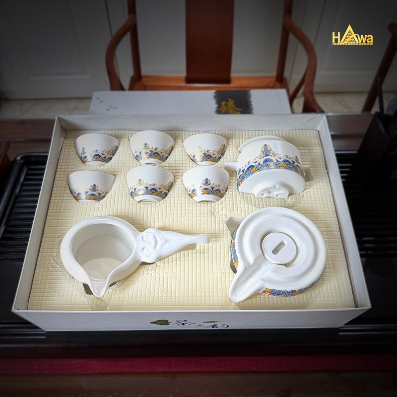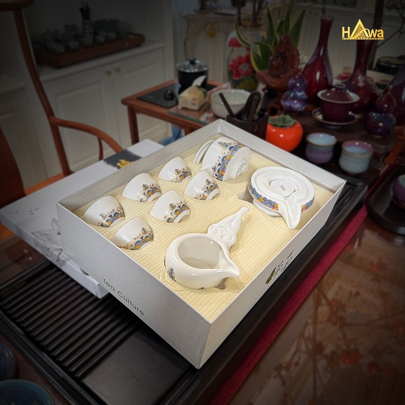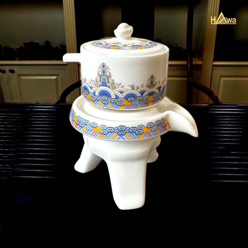 Bộ Ấm Chén Cối Xay Màu Trắng, Thiên Mục (TDSTM-CXT) gây ấn tượng với thiết kế cối xay độc đáo, kết hợp sắc trắng trang nhã và họa tiết thiên mục tinh tế. Bộ trà mang phong cách trà đạo hiện đại pha lẫn truyền thống, phù hợp cho thưởng trà hằng ngày, tiếp khách hoặc trang trí không gian phòng trà, phòng khách.