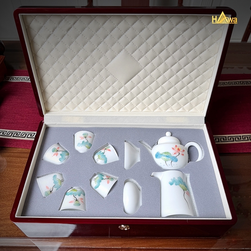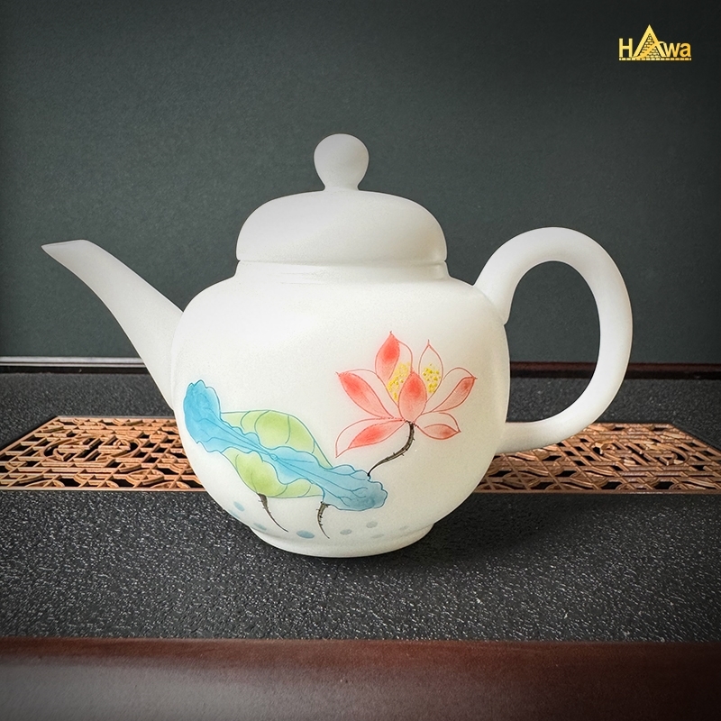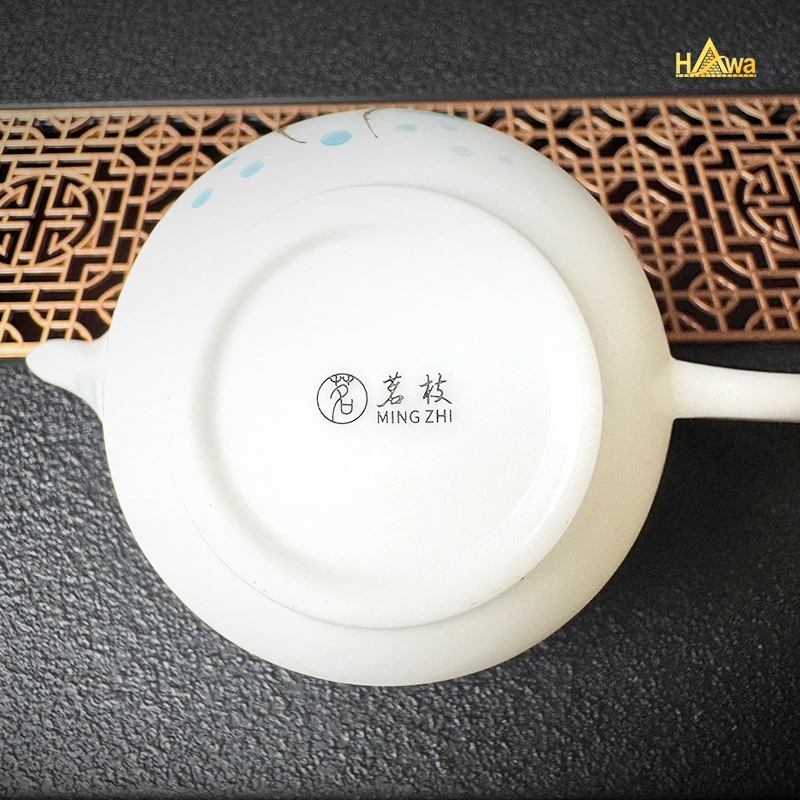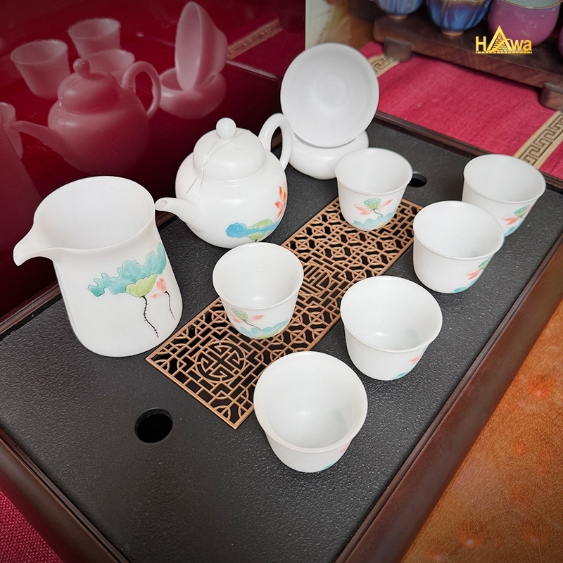 Bộ ấm chén sứ ngọc bích thấu quang cao cấp vẽ tay (SCC-SNB-VT)