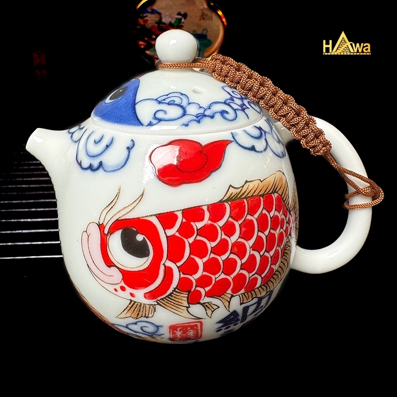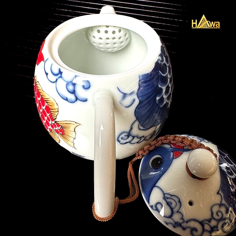 Bộ Ấm Chén Sứ Thanh Hoa, Họa Tiết Vẽ Tay Cá Chép Vượt Vũ Môn (STH-CCVVM)