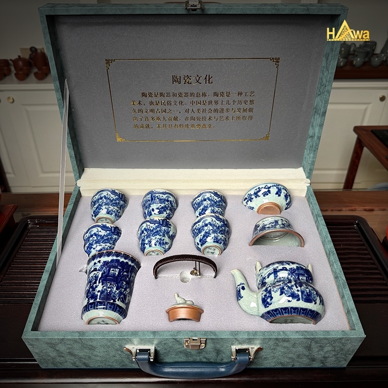Bộ Ấm Chén Sứ Thanh Hoa Men Rạn, Bách Nhi (SMRTH-BN-6C-M1) là dòng trà cụ mang đậm tinh thần gốm sứ truyền thống Trung Hoa, nơi kỹ thuật Thanh Hoa lam cổ hòa quyện cùng men rạn tự sinh, tạo nên vẻ đẹp trầm mặc, cổ kính và giàu chiều sâu.