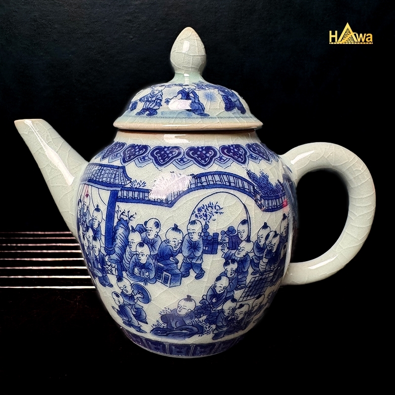 Bộ Ấm Chén Sứ Thanh Hoa Men Rạn, Bách Nhi (SMRTH-BN-6C-M2)