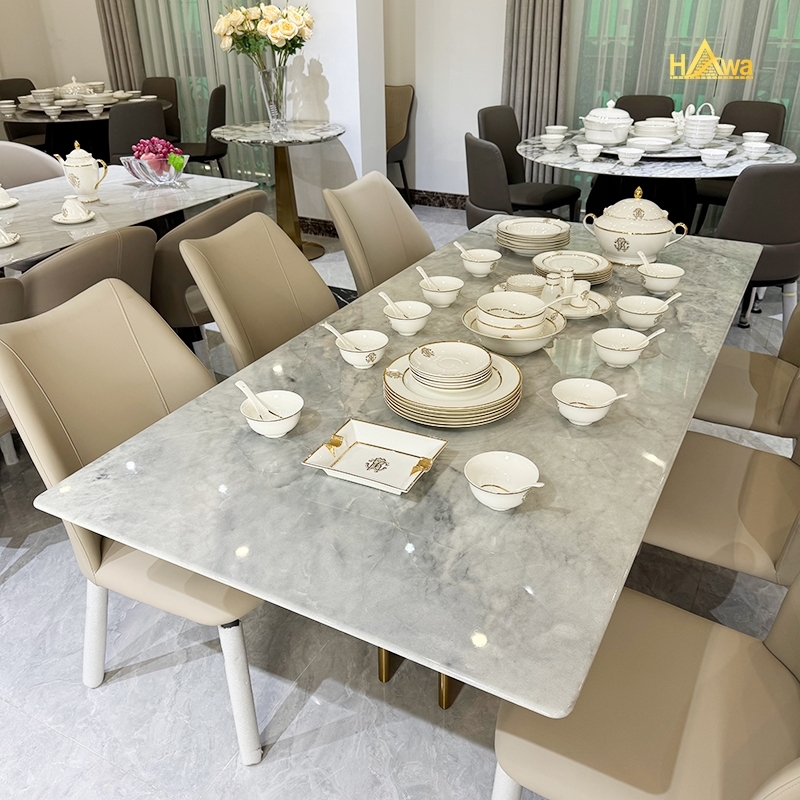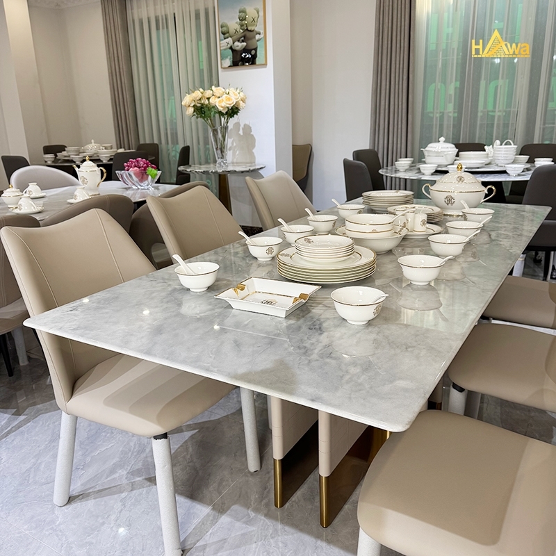 Bộ Bàn Ăn + Ghế Ăn Mặt Đá, Ghế Bọc Da, Khung Hợp Kim (CT1133+MY1015-TS)