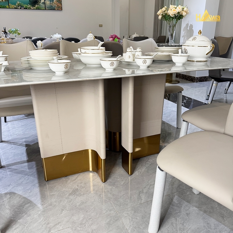 • Mặt bàn đá cao cấp: Bề mặt sáng bóng, vân đá tự nhiên tinh tế, chống trầy xước tốt, dễ vệ sinh, giữ vẻ đẹp bền bỉ theo thời gian.