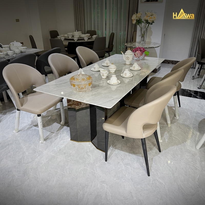Bộ Bàn Ăn + Ghế Ăn Mặt Đá, Ghế Bọc Da, Khung Hợp Kim (CT1298B + MY1023-XN)
