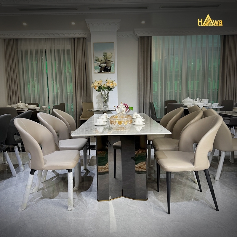Với thiết kế hiện đại, chất liệu bền bỉ và tính thẩm mỹ cao, bộ bàn ăn CT1298B + MY1023-XN không chỉ là nơi sum họp gia đình mà còn là điểm nhấn nội thất thể hiện gu thẩm mỹ tinh tế và đẳng cấp của gia chủ.
