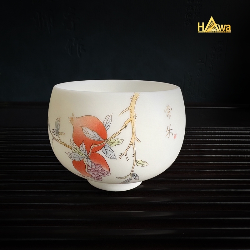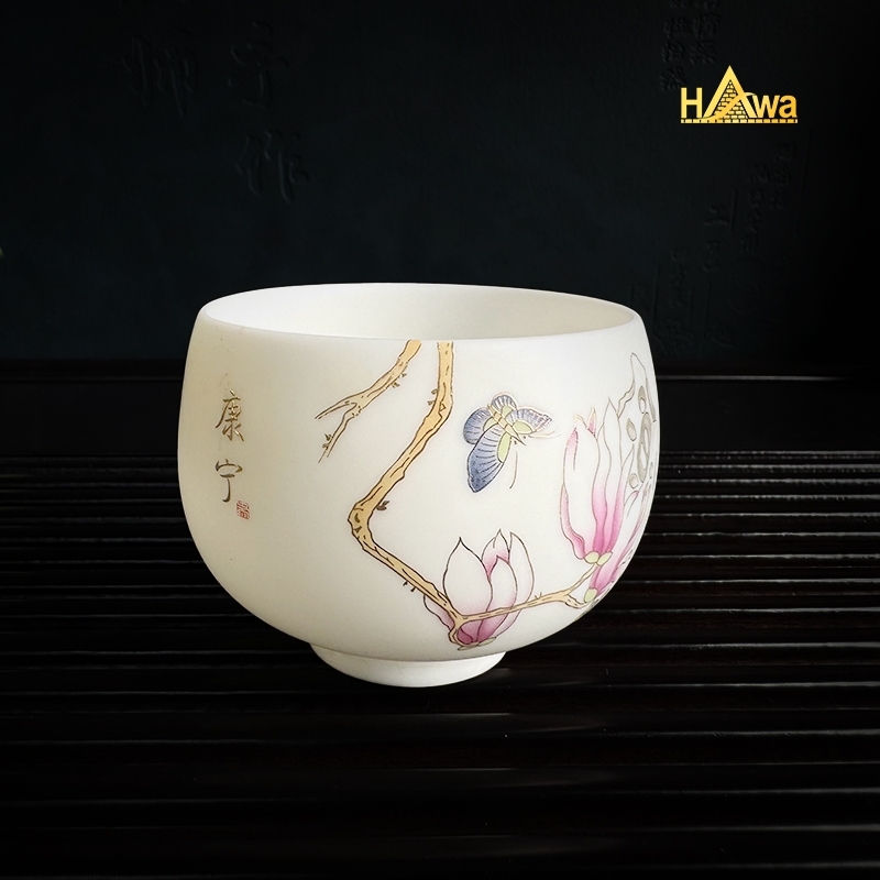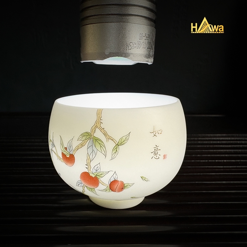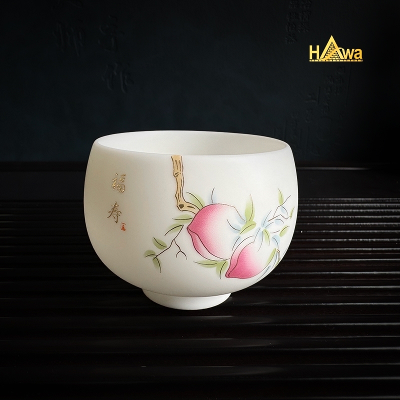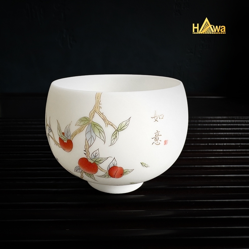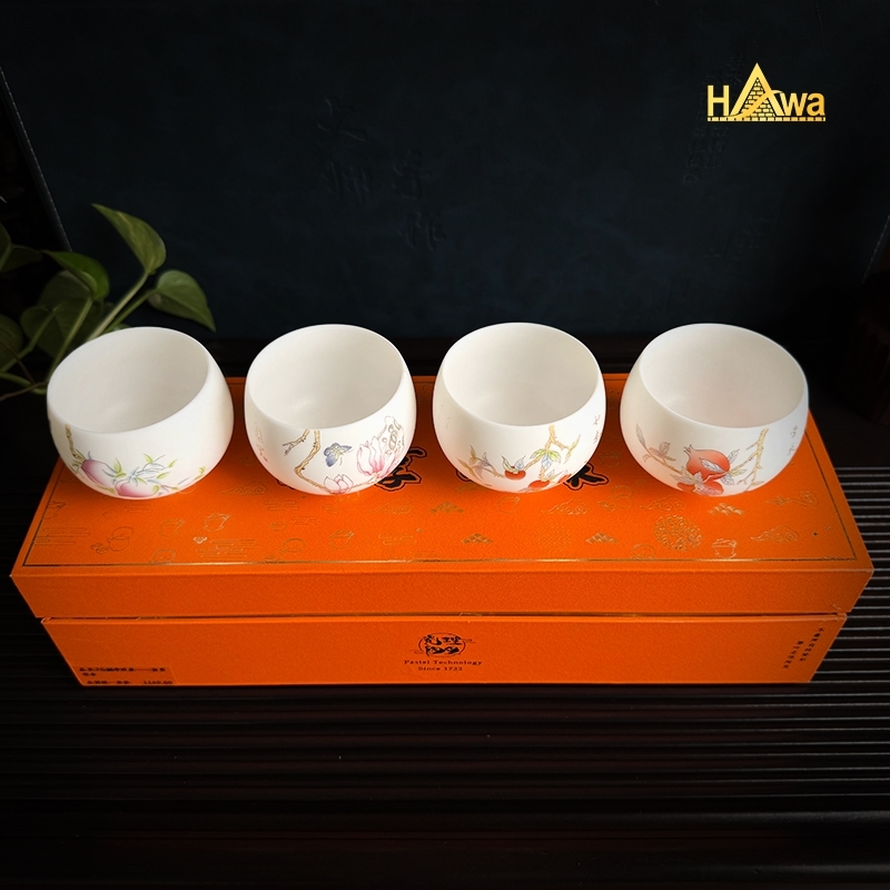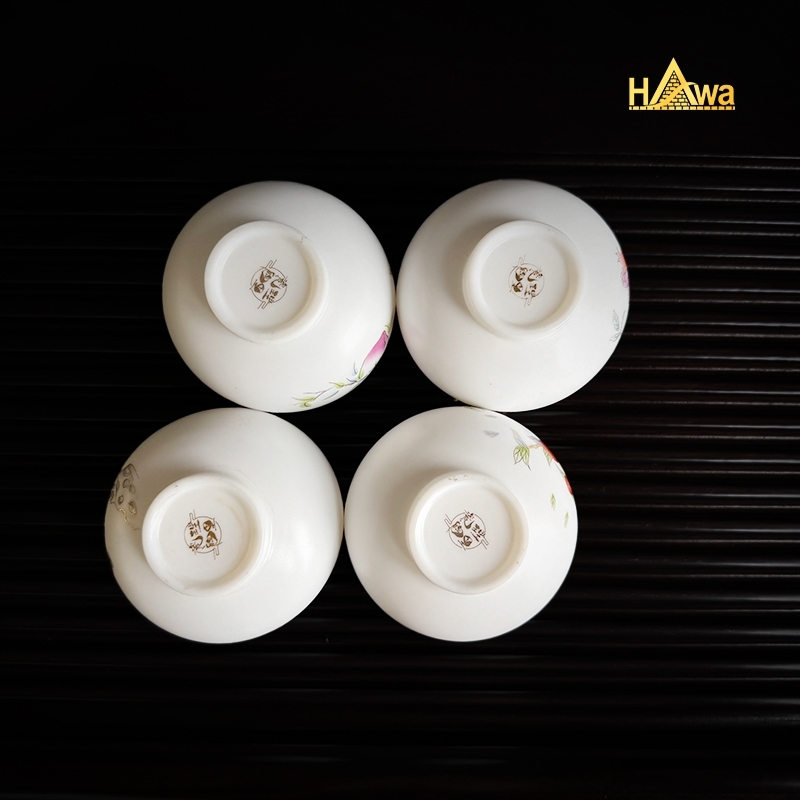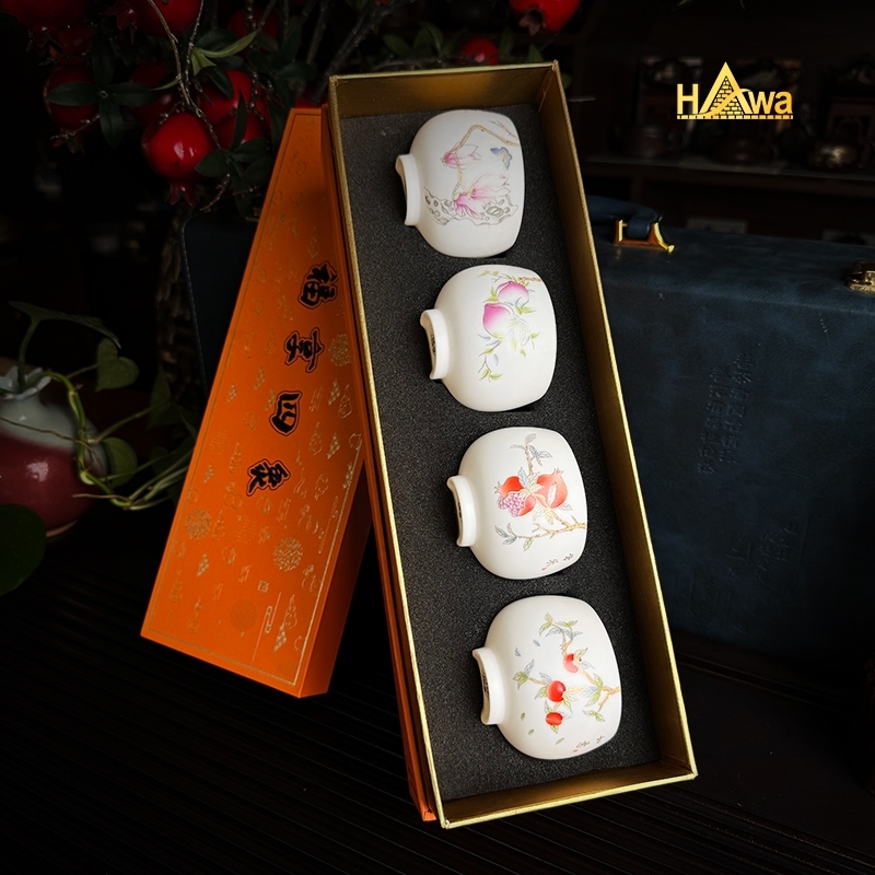 Bộ Chén Trà Phú Quý Như Ý 4 Món bằng sứ, gồm 4 chén dài 8.5cm x cao 5cm.. Mới 100%