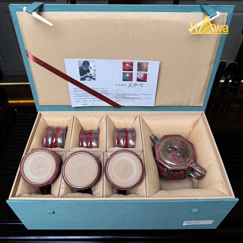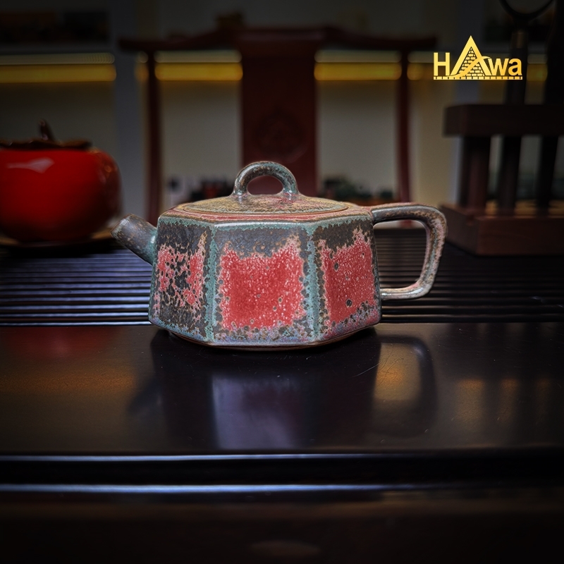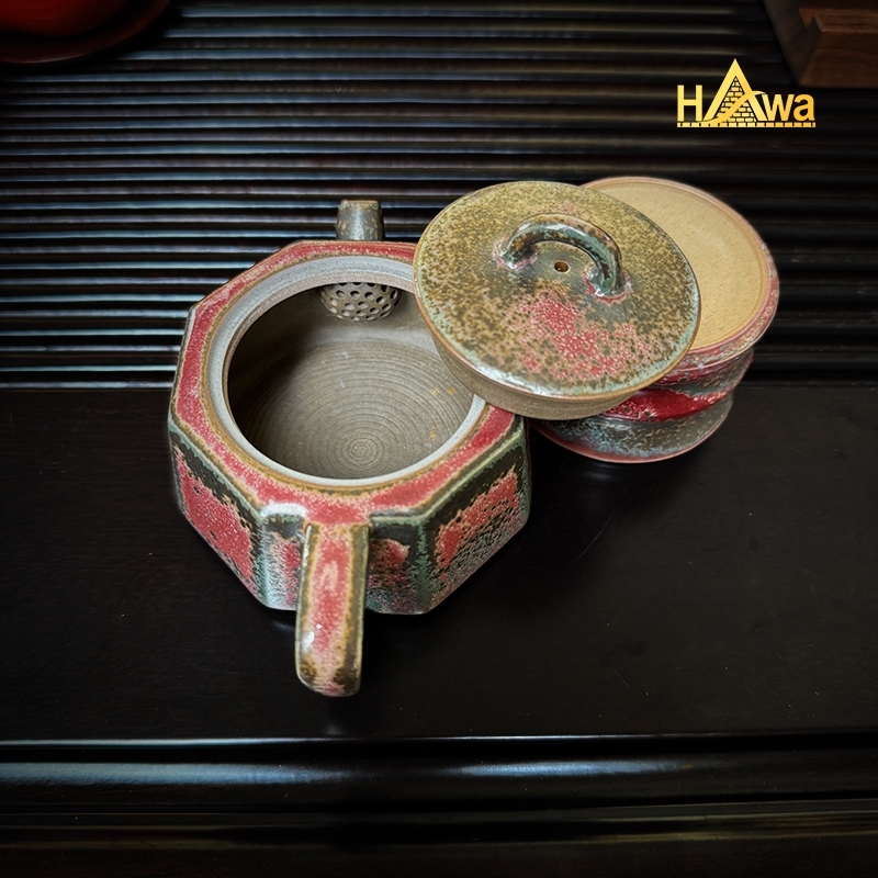 - 01 ấm trà bát phương men đốt củi cổ đại