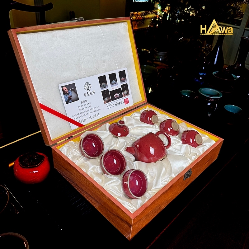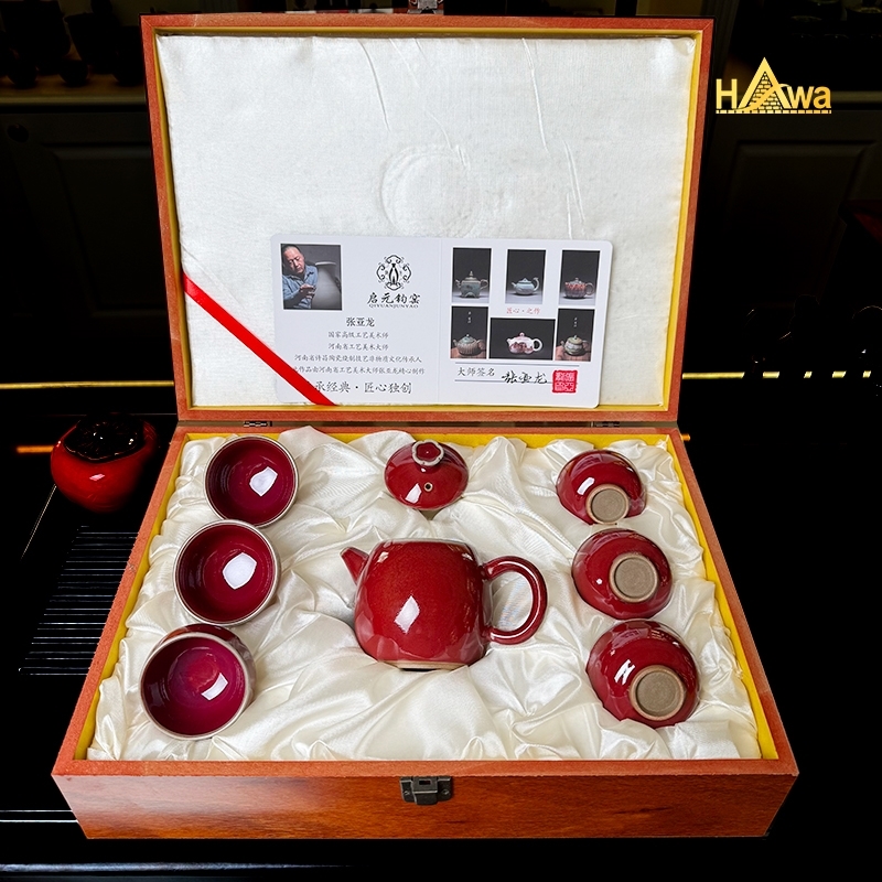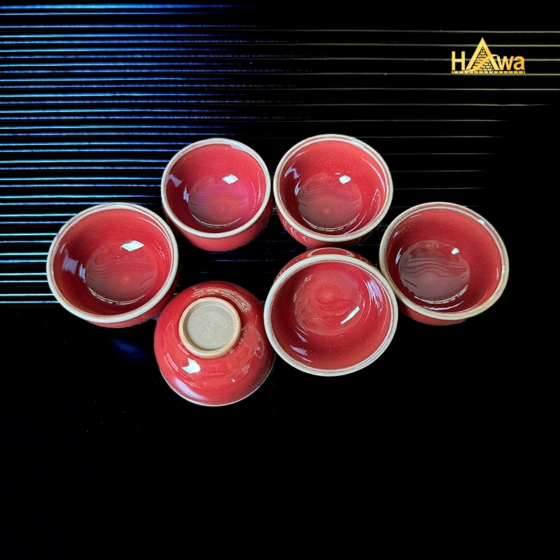 Bộ Trà Đạo Sứ Lang Diêu 7 Món Mẫu 3 (SLD-BTD-7-M3) được chế tác từ sứ nung nhiệt độ cao, phủ lớp men Lang Diêu đỏ truyền thống, màu men đều, sâu và ấm, tạo cảm giác trang nhã khi thưởng trà.