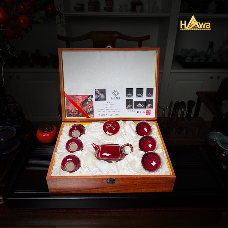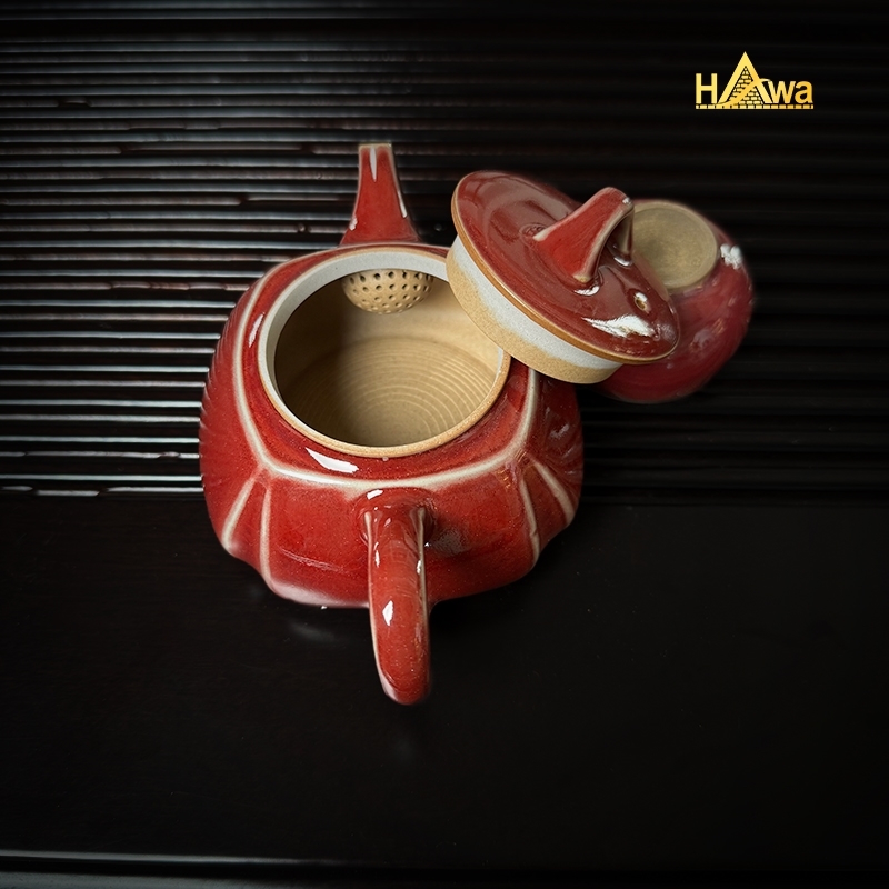Ấm Chén Trà Đạo Men Rạn Vẽ Hoa Dâu Viền Vàng (BTD-HX1)