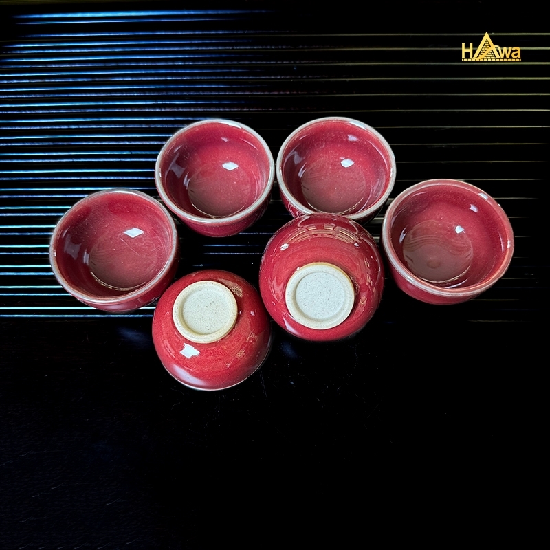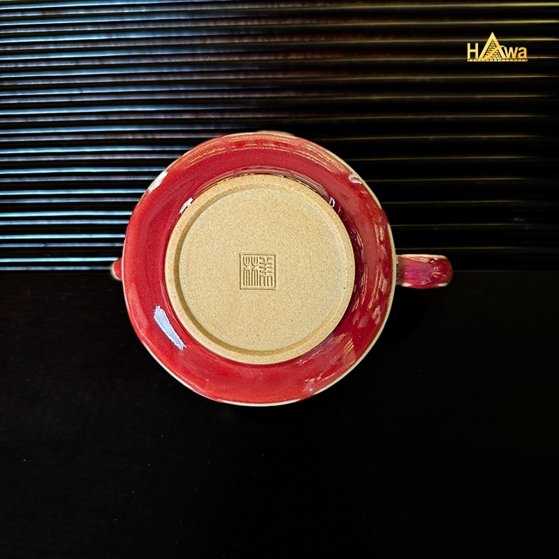 Men Lang Diêu hỏa biến có độ phủ dày, bề mặt mịn, hạn chế bám trà, dễ vệ sinh. Sắc đỏ trầm giúp làm nổi bật màu nước trà, mang lại trải nghiệm thưởng trà trọn vẹn cả về vị giác lẫn thị giác.
