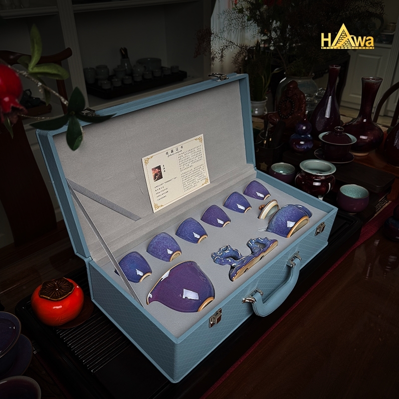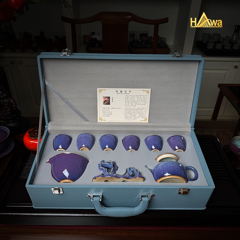 Bộ gồm 9 món đầy đủ: ấm, chén tống, kê ấm và 6 chén uống