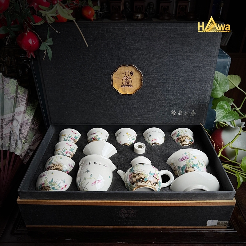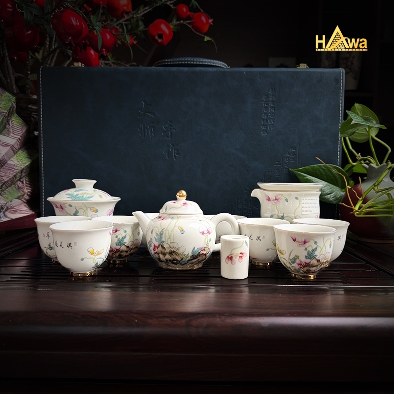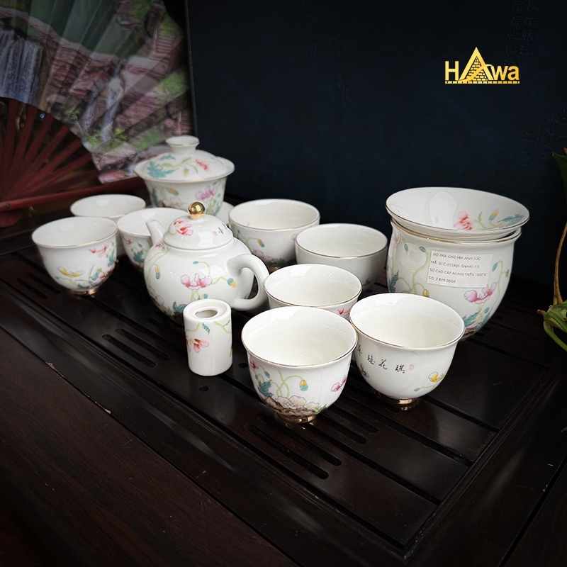 Bộ Trà Đạo Sứ Ngọc Hoa Anh Túc 13 Món: