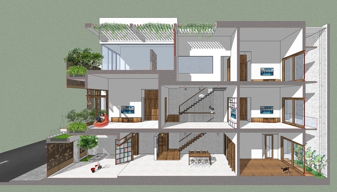 - Không gian đa tầng hợp lý: Mỗi tầng thiết kế dành cho một thế hệ phù hợp từng đặc điểm sinh hoạt.