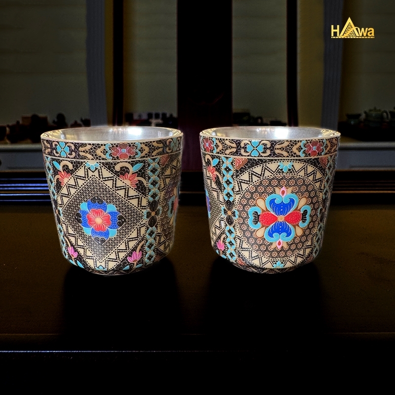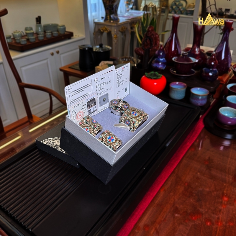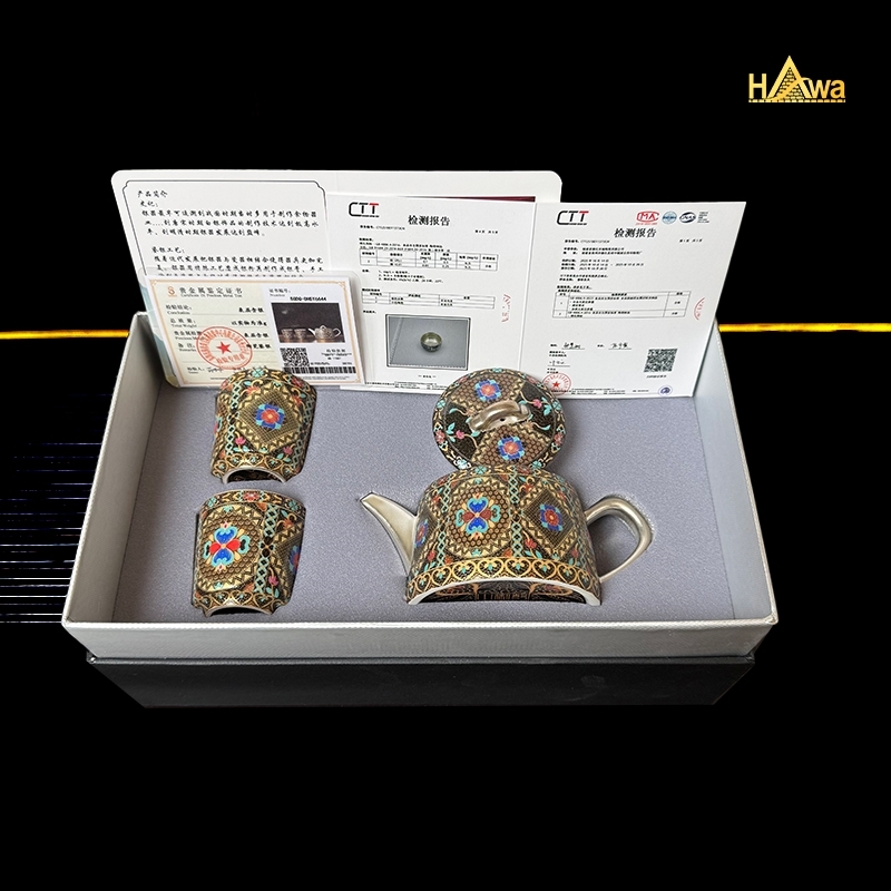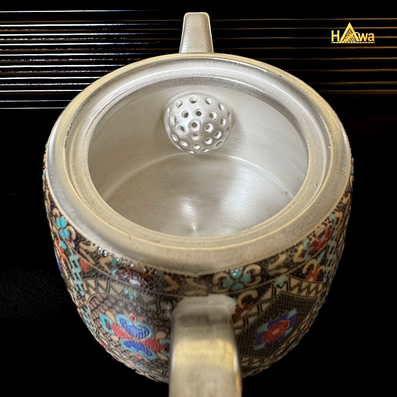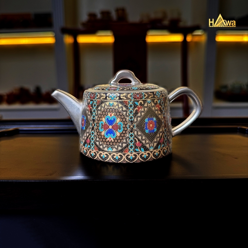 Set 3 – Bộ Ấm Chén Kiến Du Mạ Bạc Vẽ Thủ Công (SMB-1+2C)