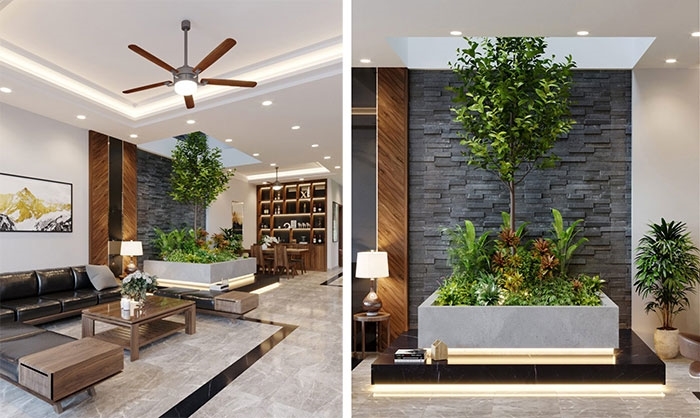 - Ứng dụng: Thiết kế dưới giếng trời giữa nhà phố, thường kết nối các tầng bằng cầu thang và là điểm thu hút ánh sáng tự nhiên.
